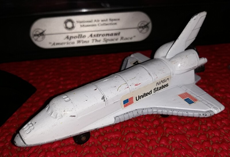 Io posso contribuire solo con questo piccolo Shuttle della Matchbox, trovato anni fa nel solito mercatino e neanche troppo malconcio. Per essere un giocattolo (vedi ruote tipo macchinina) ha proporzioni e dettagli da modellismo.