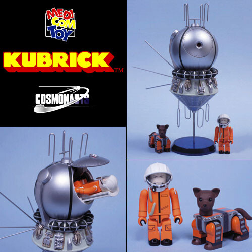 Per celebrare degnamente la giornata di oggi, anche da un punto di vista giocattolistico, vi segnalo questo Kubrick Cosmonauts, uscito in tempi recenti, che include un bel modello di capsula Vostok (con tanto di sedile eiettabile), figurino di cosmonauta e figurino della cagnetta Laika: