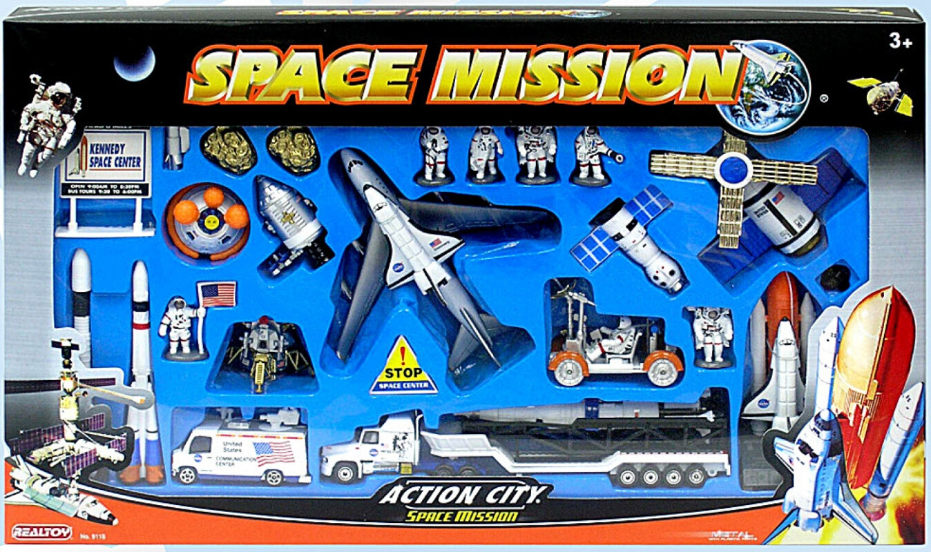 Qui siamo di fronte ad un compendio contemporaneo di astronautica, tutti insieme appassionatamente! Sto parlando del playset “Action City Space Mission” della RealToy (del quale ne sono prodotte diverse versioni, ma questa qui è la più completa in assoluto):
