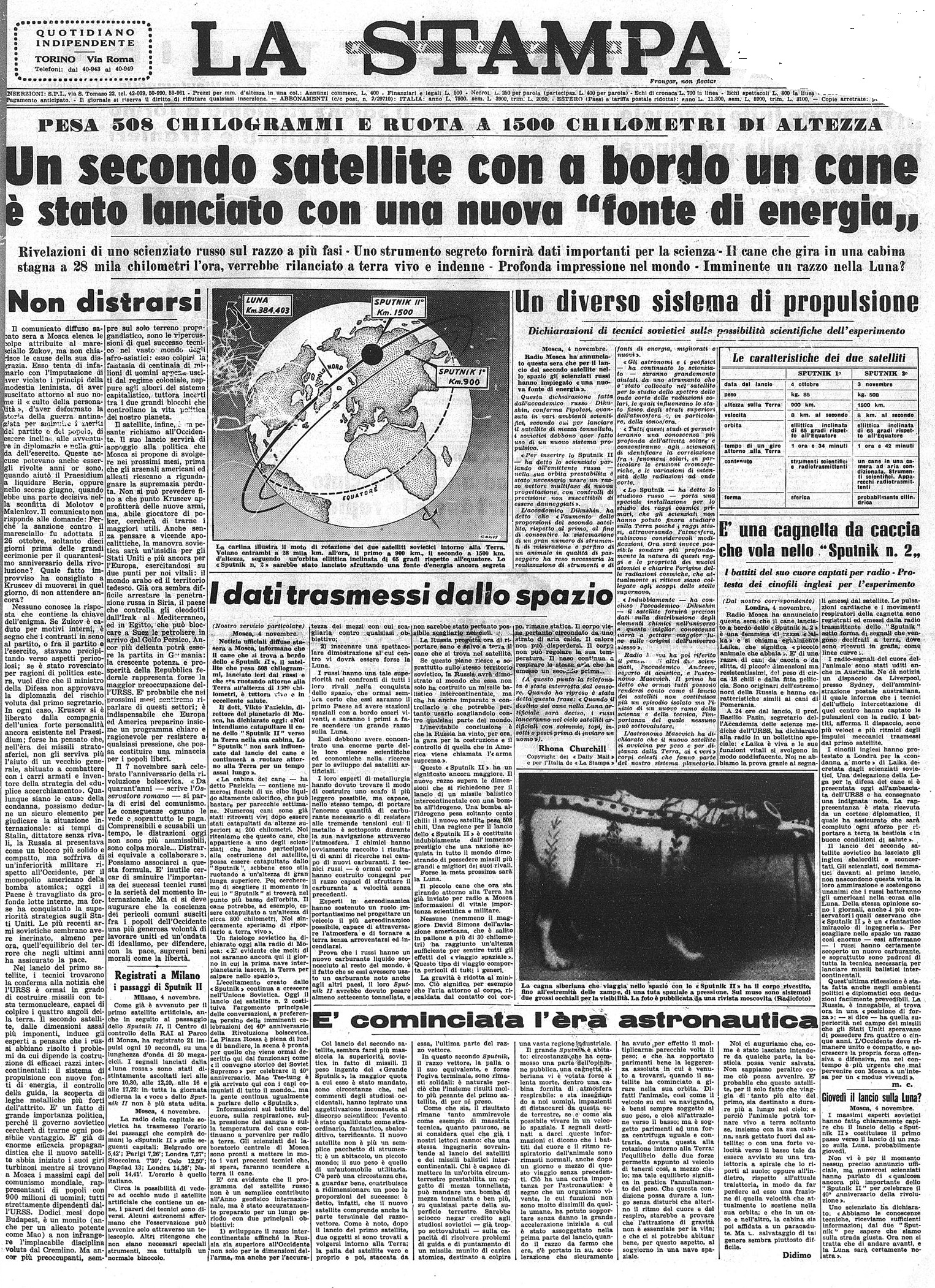 Ricordavo che il nome fosse Cernuskaja, ma c’era confusione. Laika è il nome dato ad una razza di cani randagi che si aggiravano nei pressi del cosmodromo e che furono presi come cavie a buon mercato, solo femmine, perché i maschi complicavano la realizzazione delle imbragature… comunque fu usato quel nome, come mi conferma fonte russa, perché più “occidentalizzabile”.