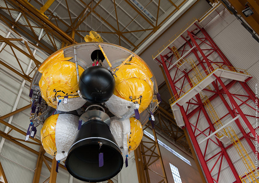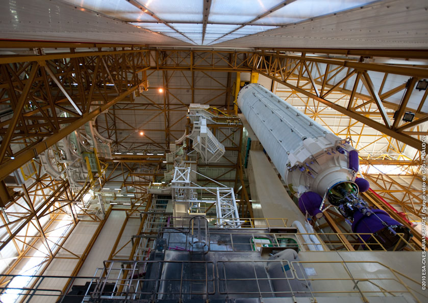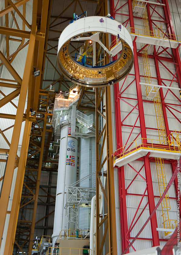 L’assemblaggio iniziale del 200esimo Ariane è ora completato e ora il razzo è pronto per il trasferimento nel Final Assembly Building dove avverrà l’installazione del secondo ATV.