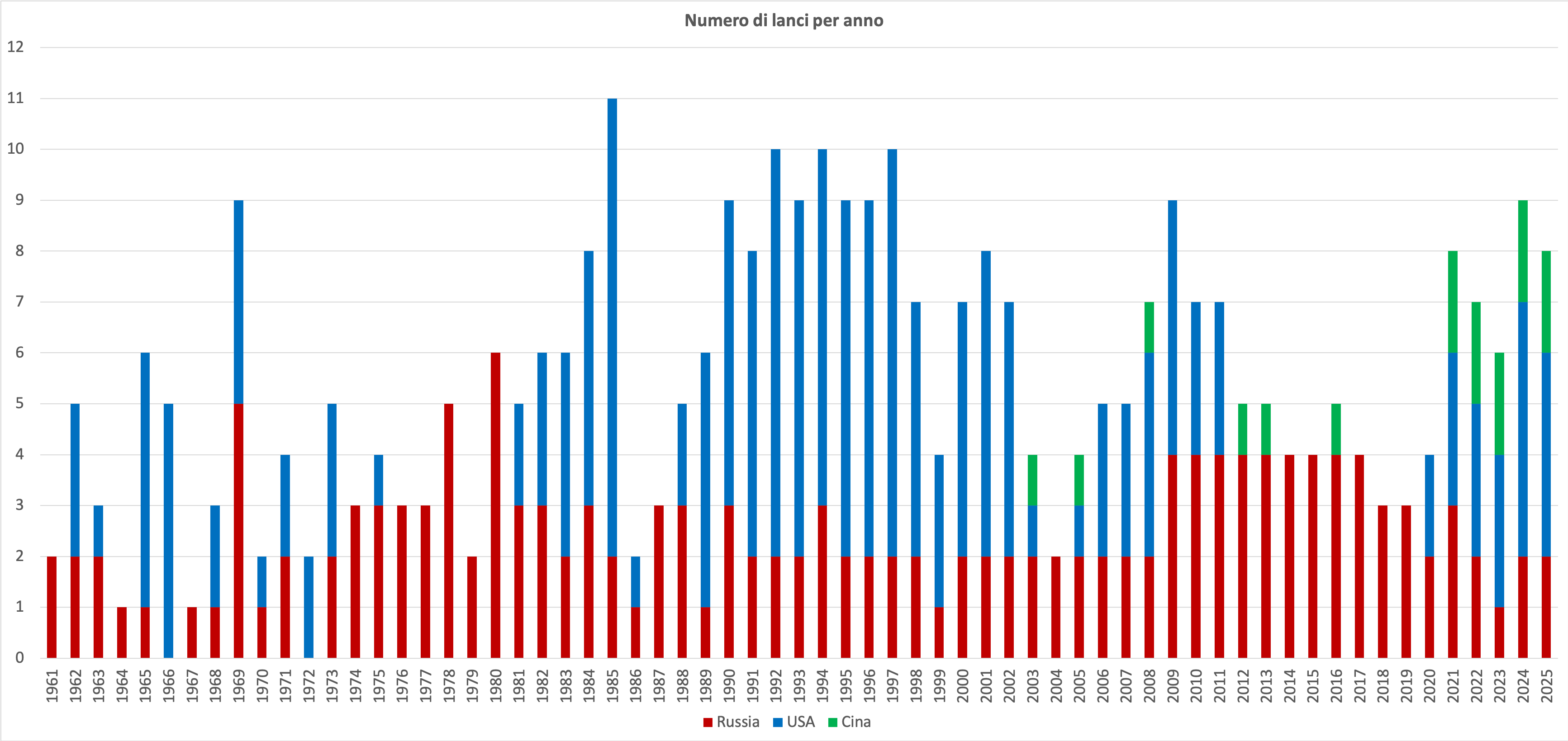 Per quanto riguarda il numero di lanci, ce ne è stato uno in meno da parte statunitense rispetto al 2024 ma il totale resta comunque buono, attestandosi ad 8 lanci complessivi.