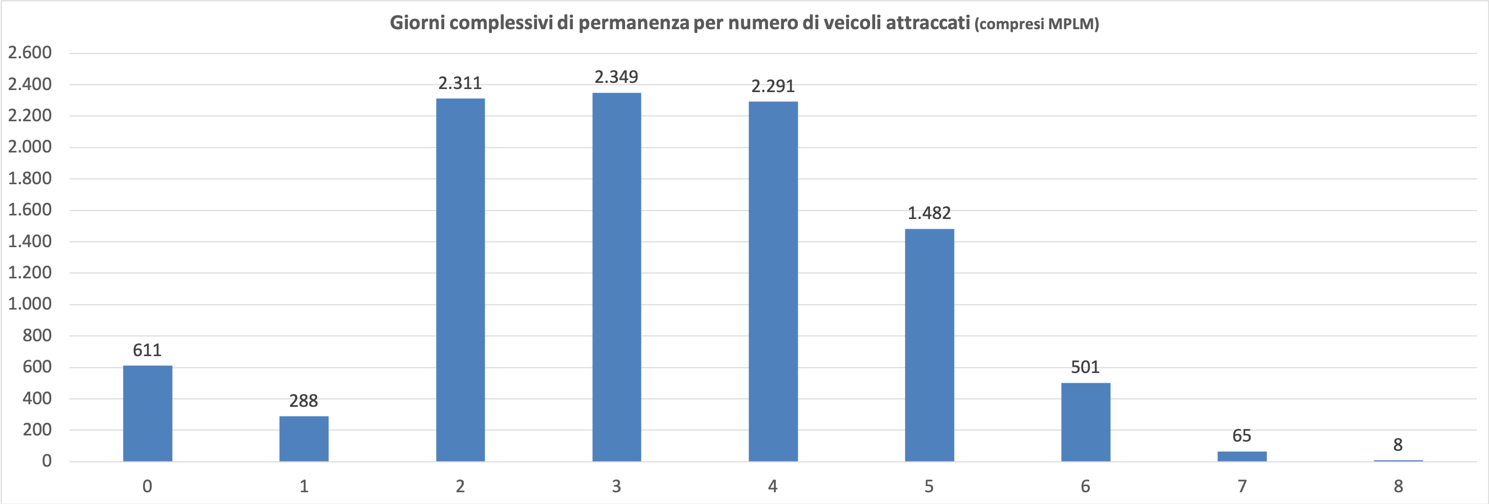 Anche il traffico totale ai boccaporti è stato ridotto rispetto al 2024, con sole 21 manovre totali. Un valore così basso non si verificava dal 2020.