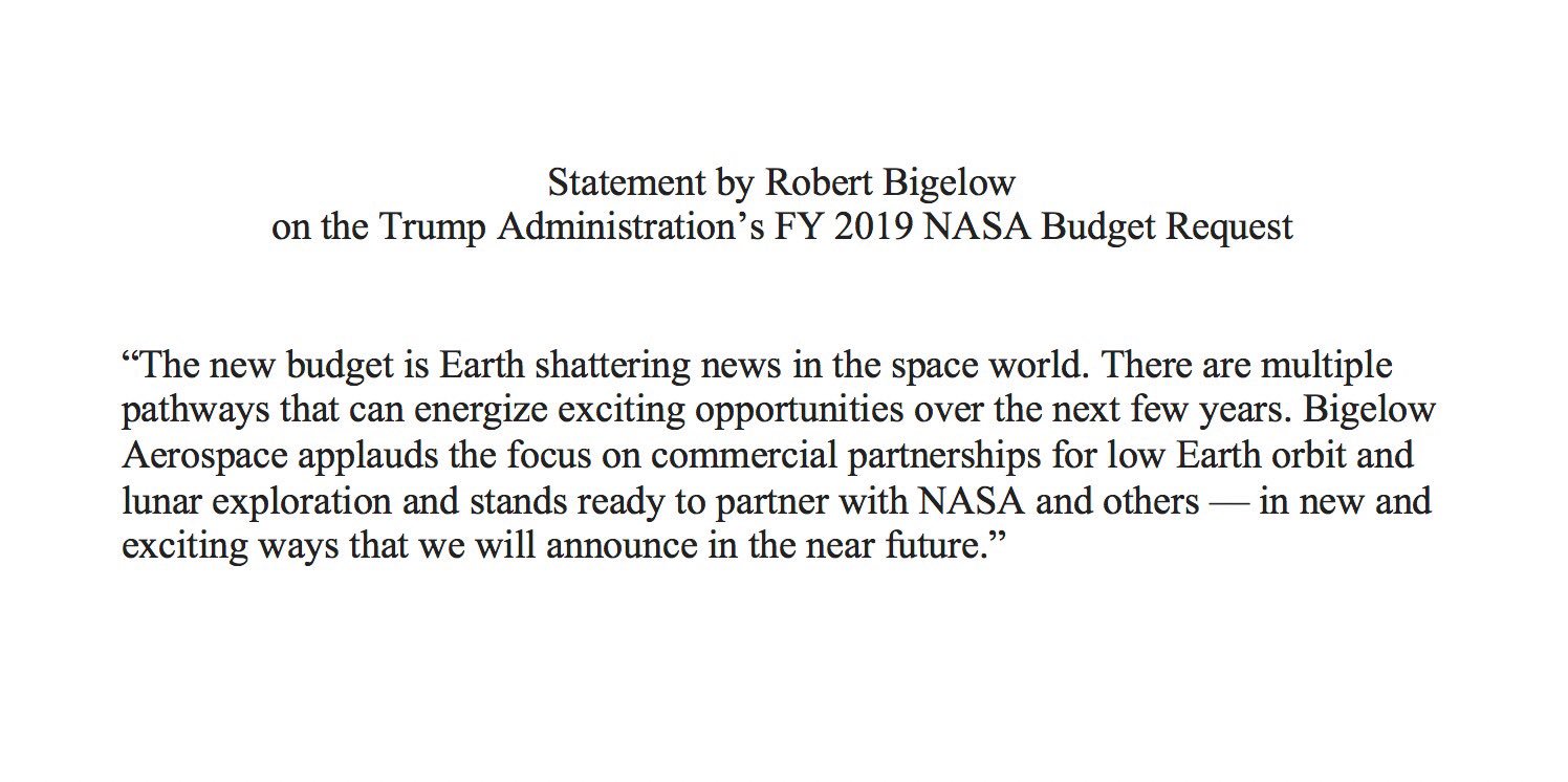 Gli americani appalteranno alla Bigelow, per il resto passeranno il tempo a dirci che loro faranno qualcosa di lunare, marziano, vegano, andromedario…