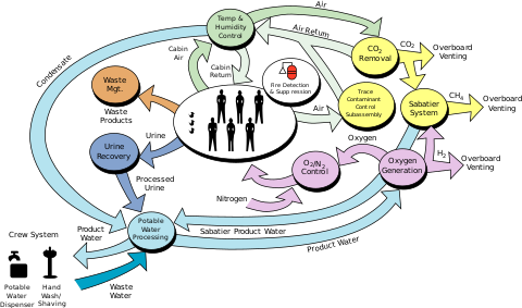 Qui una overview su come funziona l’ecosistema chiuso della ISS (ECLSS Environmental Control and Life Support System - Sistema di controllo ambientale e supporto vitale)