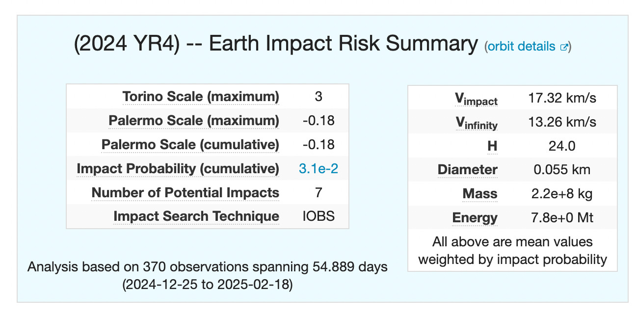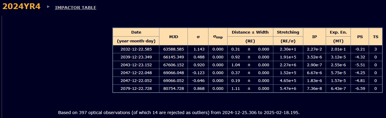 Per 2024yr4 siamo arrivati praticamente a zero, 4 possibilità su 10.000 per un impatto.