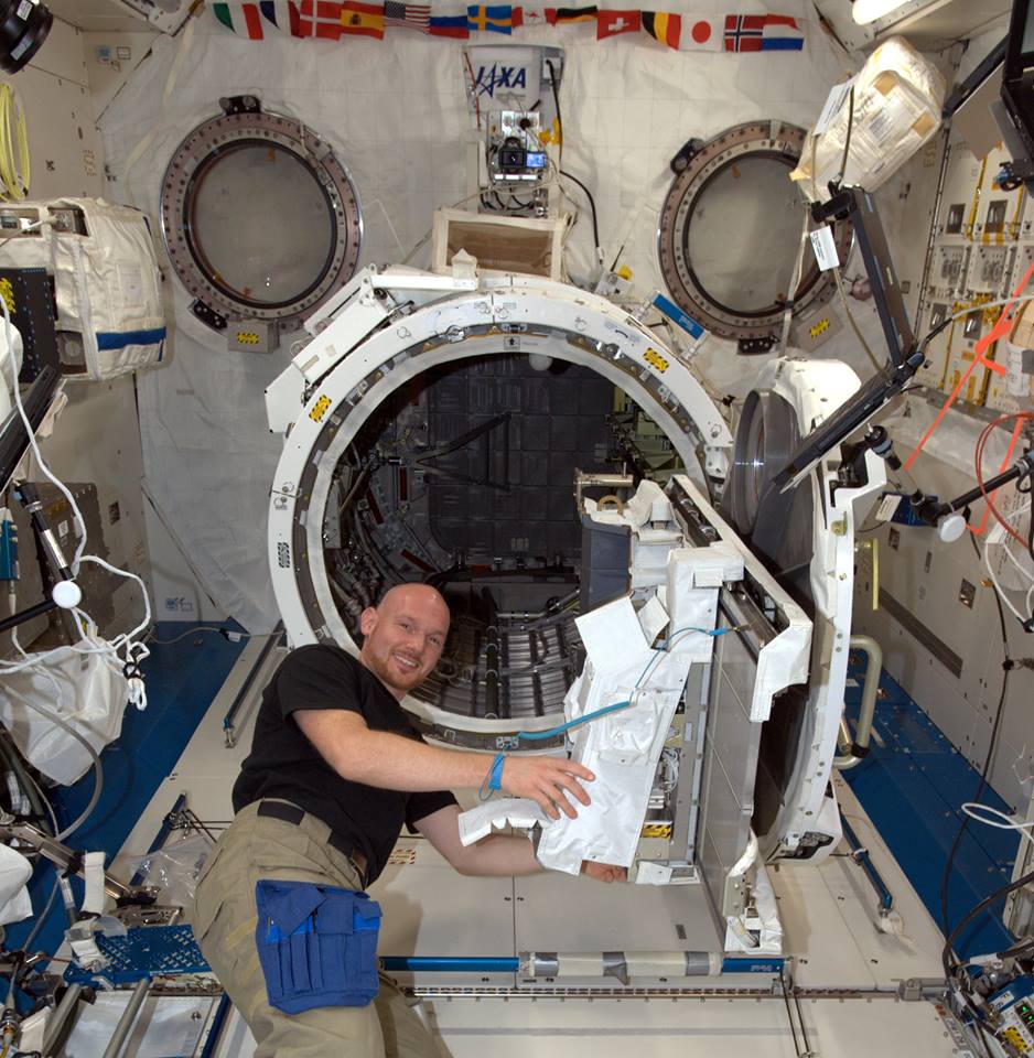 Alex Gerst ha postato oggi su Facebook questa foto dell’airlock del JEM, commentando “Da questa piattaforma, lanceremo dei veri mini-satelliti nello spazio!”