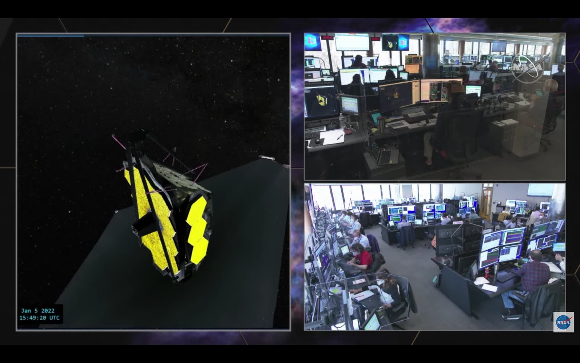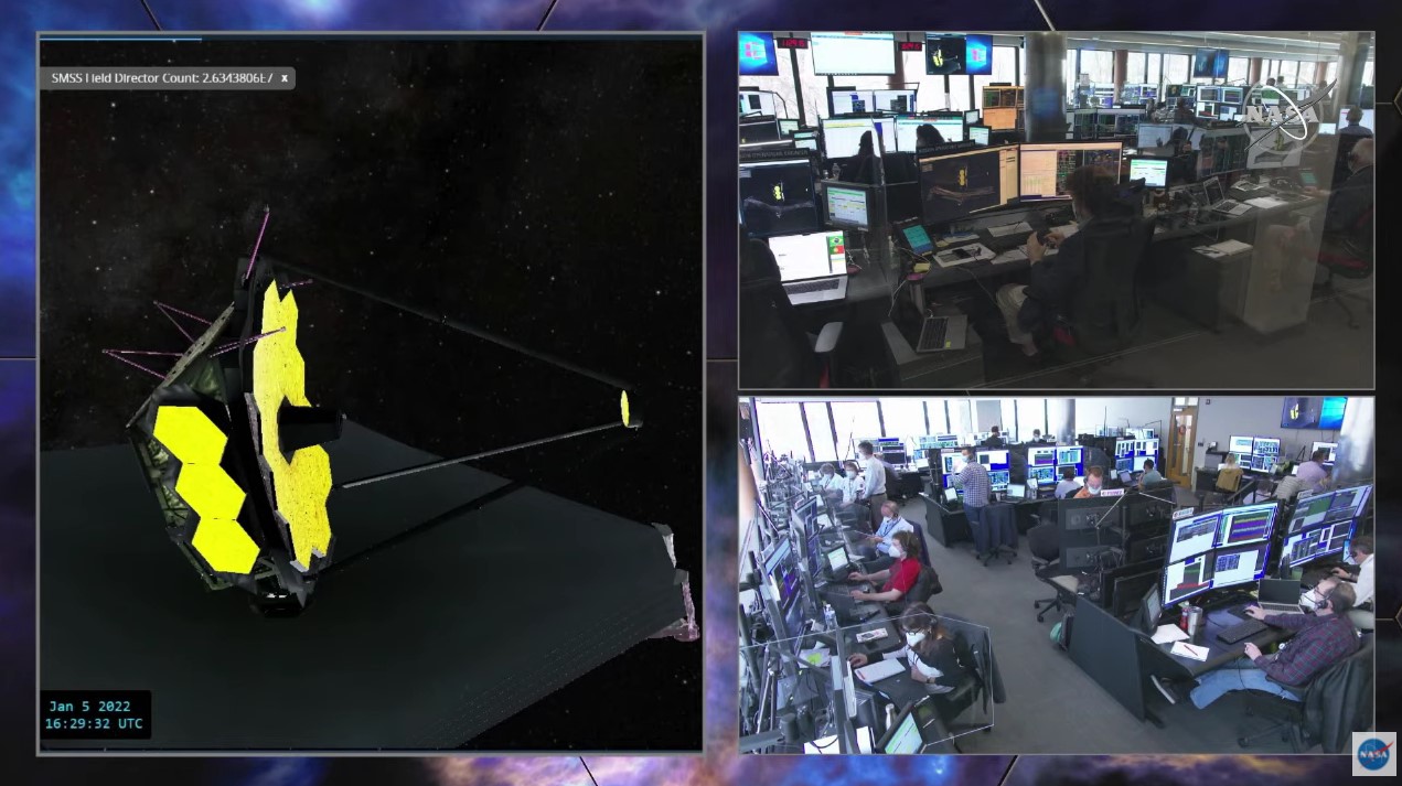 nella parte sinistra della schermata la rappresentazione dello stato attuale del dispiegamento dello specchio secondario di JWST