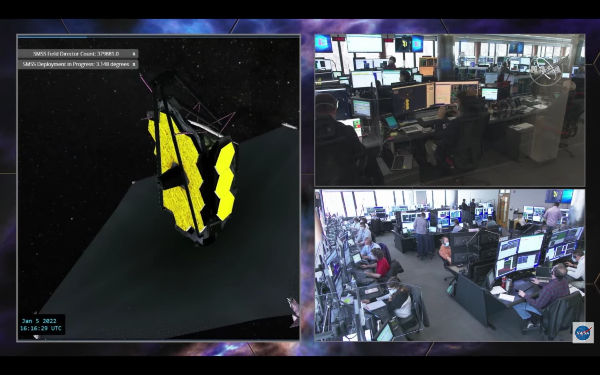 il team di JWST sta verificando che il supporto a tre braccia dello specchio secondario sia correttamente aggancio prima di dare inizio al dispiegamento dello specchio primario