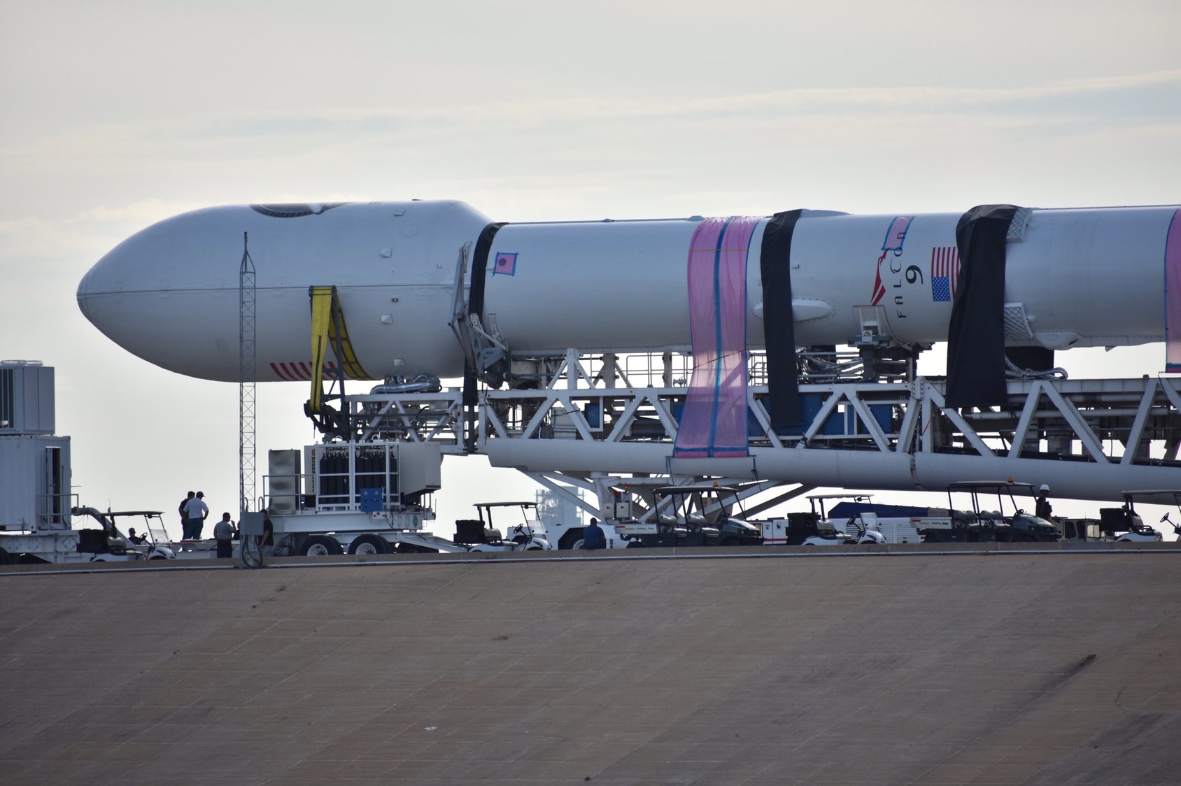 Ed ecco il Falcon 9 con il payload montato.