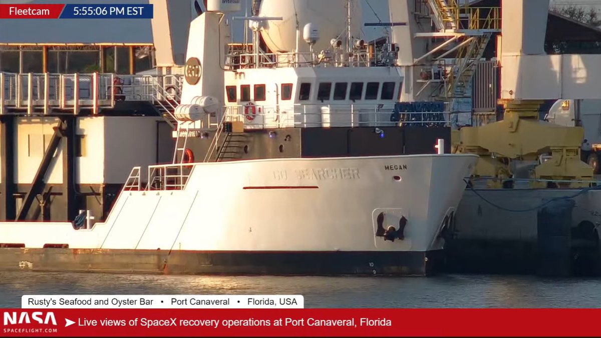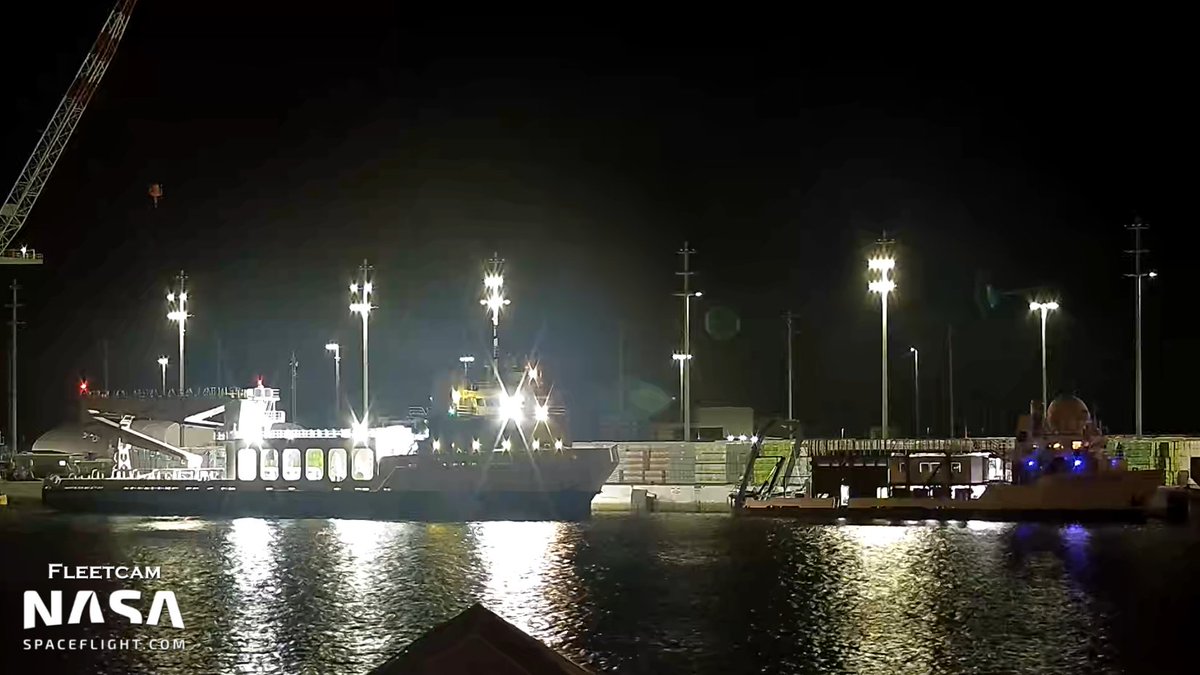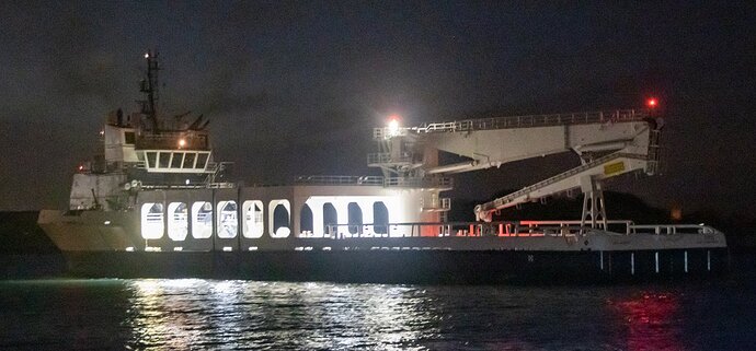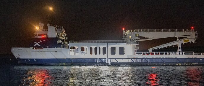 La nuova nave di recupero Doug ha fatto alcune esercitazioni per raccogliere i fairing.