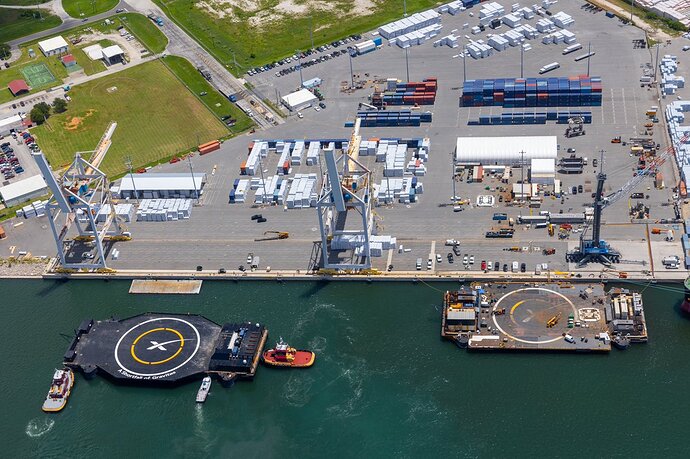 un bel po’ di flotta di SpaceX attraccata al molo cargo 6 di Port Canaveral