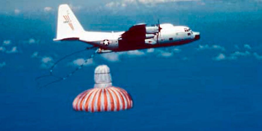 Come detto da Maxi, si faceva al volo con i C119 e poi C130 per le capsule fotografiche, ma erano moooolto più piccole… e le ripescavano a 4500 m di quota