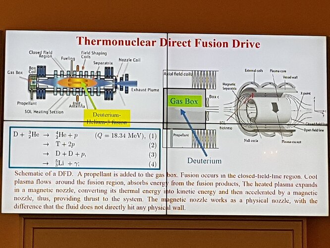 Leggermente off-topic, oggi al GLEX2021 è stato presentato (tra tante altre cose) un concept di propulsione termonucleare a fusione, sfruttando la reazione deuterio-elio, diversa da quella nucleare termica di questo thread, molto più indietro per quanto riguarda la fattibilità ma molto più efficiente per quanto riguarda l’impulso specifico, che potrebbe arrivare a cifre fino a 10.000 secondi.