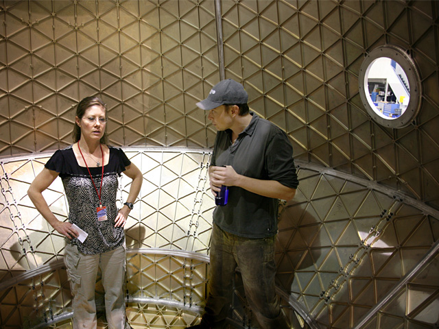 L’astronauta dell’Expedition 23, Tracy Caldwell Dyson all’interno del veicolo spaziale Dragon della SpaceX assieme all’amministratore delegato e direttore tecnico della SpaceX Elon Musk.