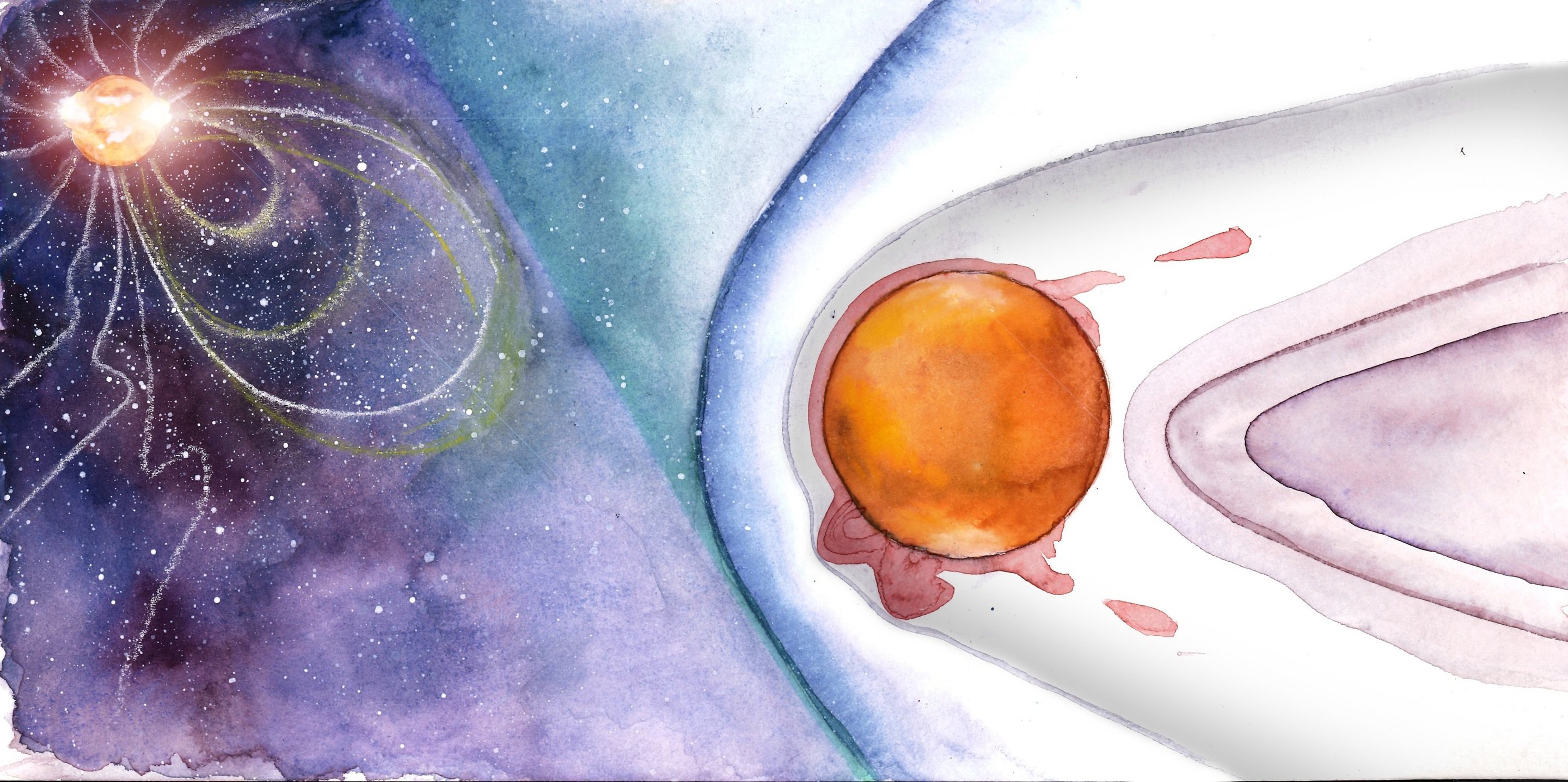 i risultati delle misurazioni da parte dello strumento ASPERA- 3 di Mars Express, fanno ritenere che il vento solare, a contatto con gli strati superiori della ionosfera marziana, comporti la formazione di un campo magnetico indotto che protegge la stessa atmosfera del pianeta rosso.