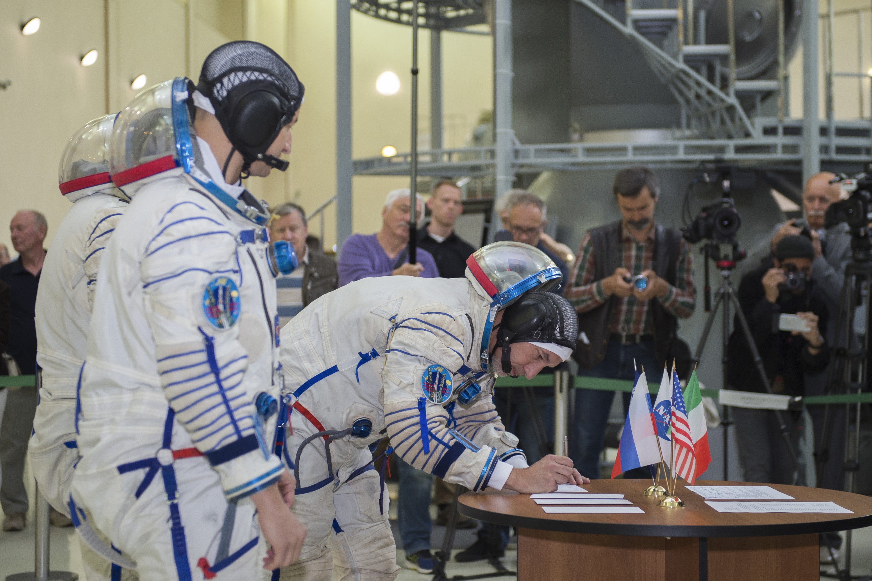 Stando al resoconto pubblicato da Roscomos e dal CFC i giornalisti erano interessati al programma scientifico che sarà svolto sulla ISS, alle spacewalk ma anche, ovviamente ad aspetti più di colore. Apprendiamo per esempio che l’indicatore 0G di Aleksander sarà l’anatroccolo “Kvak” (утенок «Квак»), - di cui al momento non abbiamo un immagine.
