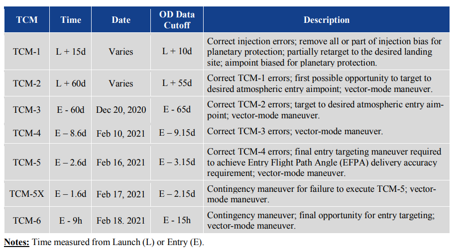 | TCM-4 | E – 8.6d | Feb 10, 2021 | E – 9.15d | . |