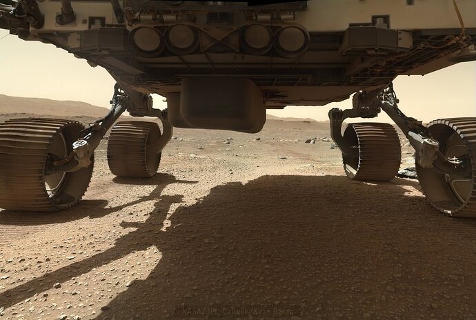 Seán Doran ha fatto questo bel collage di immagini scattate da SHERLOC/WATSON sotto la pancia di Percy dove si nota bene il guscio che contiene Ingenuity.