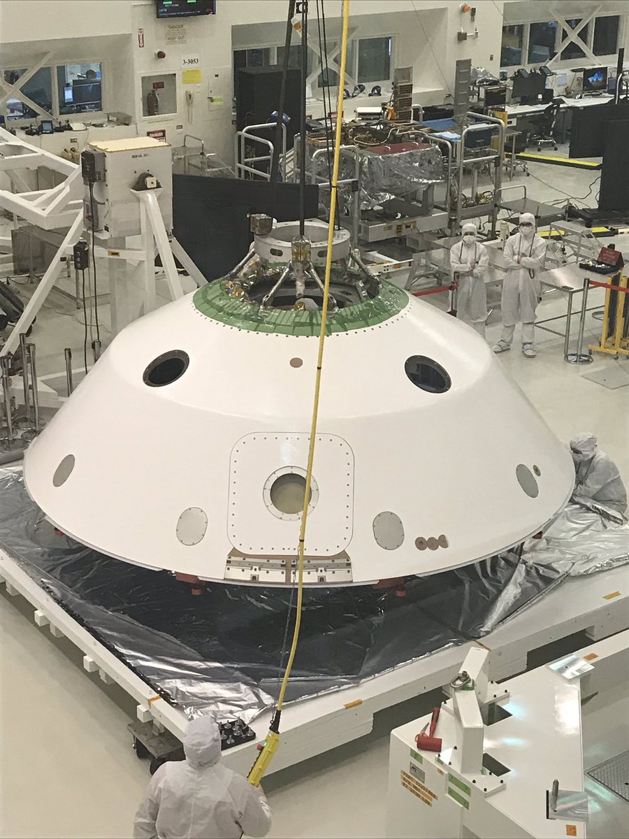 La carenatura protettiva del rover è arrivata oggi al JPL.