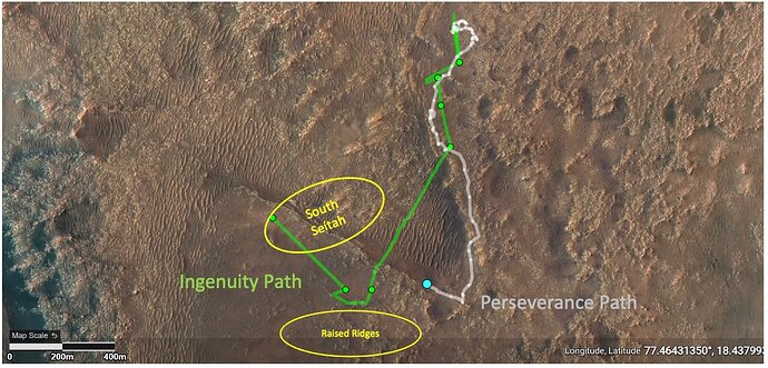 Probabilmente questo è uno dei motivi per cui Ingenuity è decollato e atterrato nello stesso punto, vicino a Perseverance, il quale, grazie alla nuova funzionalità AutoNav abilitata, nei giorni scorsi si è spostato rapidamente a nord-ovest attraverso la cresta meridionale di Séítah proprio per incontrare Ingenuity.