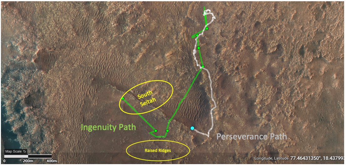 Questa però è stata la missione più ambiziosa e rischiosa allo stesso tempo. Si è deciso di accettare i rischi di un tale volo, principalmente perché la corrispondente ricompensa pianificata era altrettanto elevata, con la possibilità di fornire riprese aeree ben mirate su obiettivi specifici, che potessero essere di effettivo aiuto per il team di Perseverance nella sua ricerca e pianificazione scientifica.