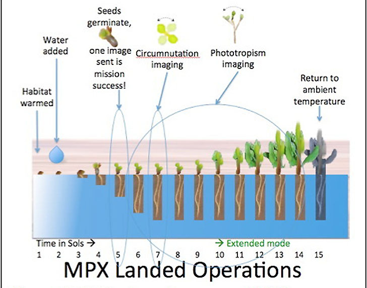 MPX (Mars Plant Experiment) utilizzerebbe una unità CubeSat fissata all’esterno del rover come una serra conterrebbe aria terrestre e circa 200 semi di Arabidopsis. Dopo due settimane non verrebbe più riscaldata lasciando morire le piante.