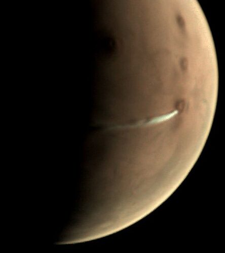 Nonostante sia stata osservata nei pressi del vulcano Arsia Mons, vicino all’equatore marziano, non è collegata all’attività vulcanica ma si tratta di una nube di ghiaccio d’acqua, quella che gli scienziati chiamano una nube orografica e si tratta di un fenomeno regolare in questa regione.