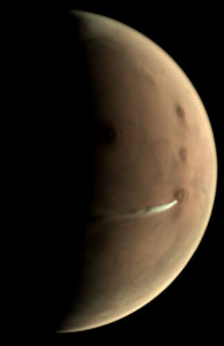 La sonda europea Mars Express sta osservando un’inusuale nube su Marte.