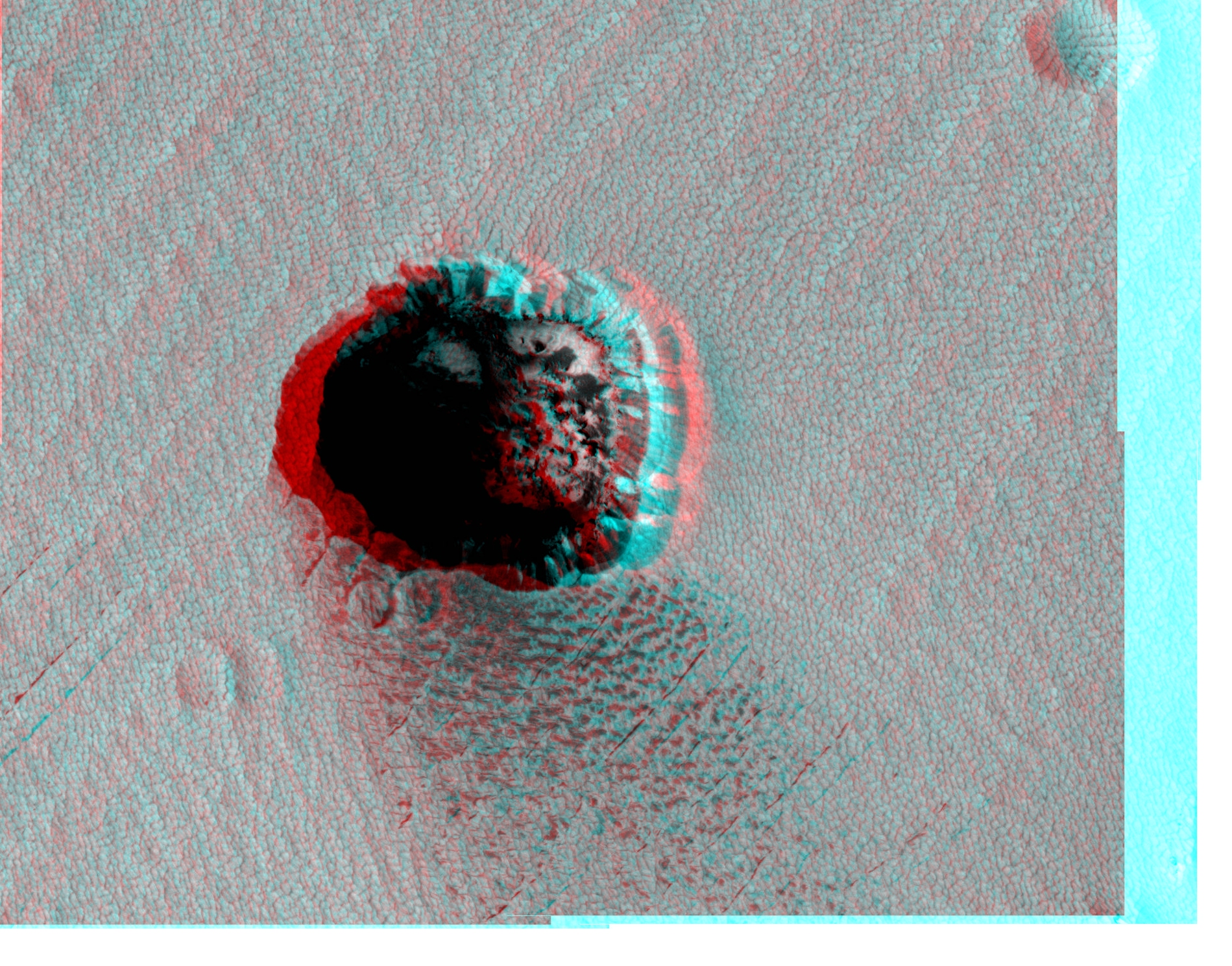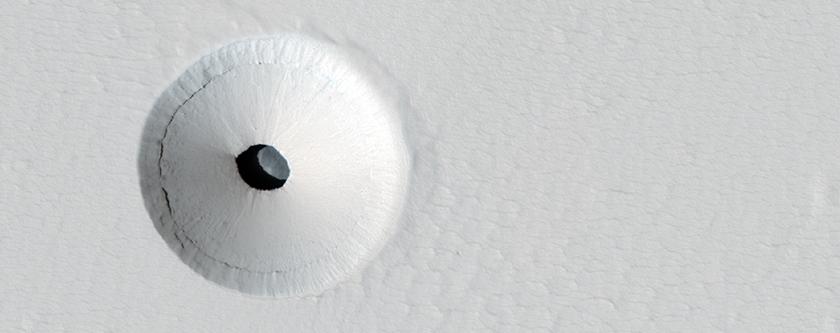 Sembra un cedimento del terreno; considerando la quantità di “polvere” che si muove colle tempeste di sabbia l’orografia originale di Marte non esiste più. Laddove il terreno ha subito un sisma o una erosione sotterranea lo strato superficiale cede.