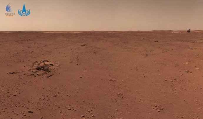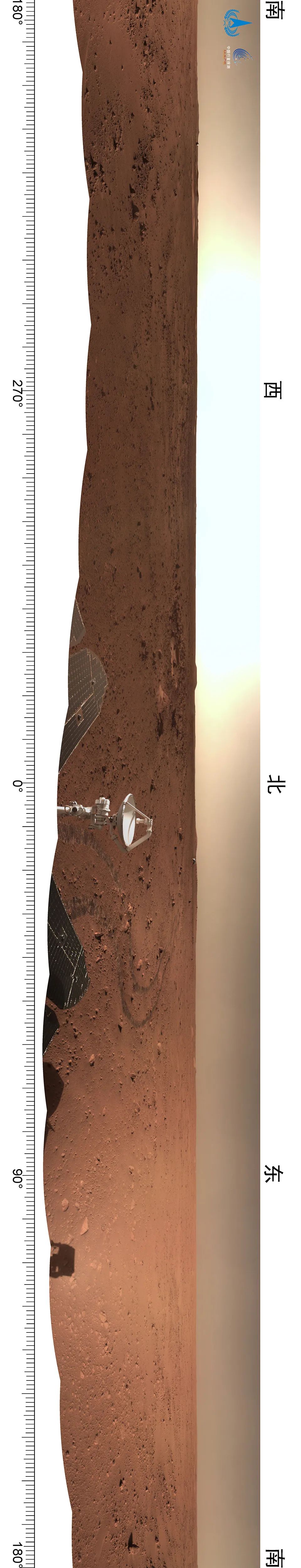 CNSA condivide anche la seguente foto panoramica (originale al seguente link, dove si trova anche il video precedente, quello dell’apertura del paracadute e altre immagini già note: https://mp.weixin.qq.com/s/aICucLh4sV2Ajc-gLnaxtQ)
