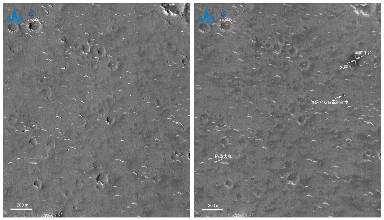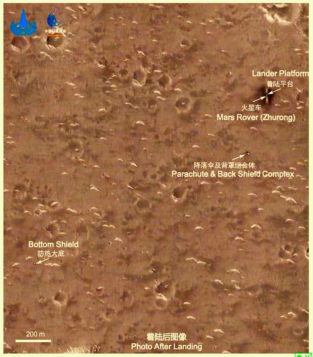 Zhurong si trova a soli 130 metri dal suo paracadute.