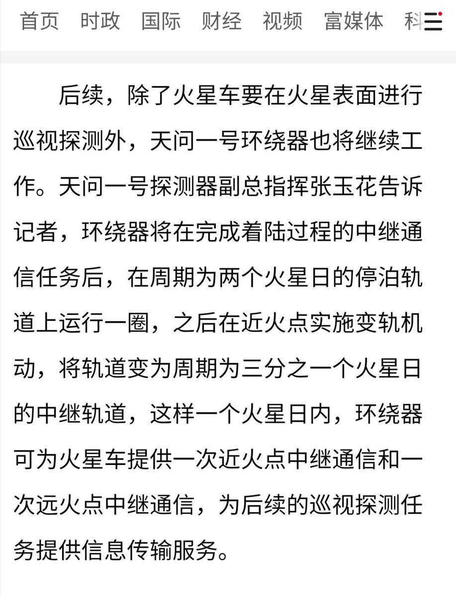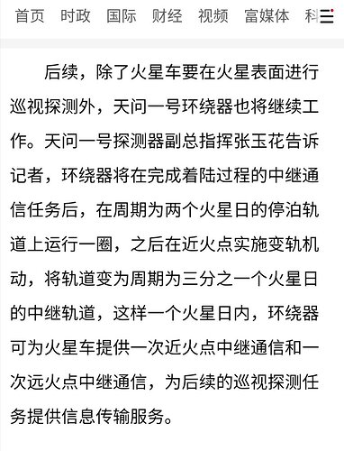L’orbita di Tianwen-1 attualmente è pari a 2 Sol. Nei prossimi giorni l’orbiter effettuerà un burn che lo porterà su una nuova orbita pari a 1/3 Sol. In questo modo l’orbiter potrà fornire supporto nelle comunicazioni tra terra e rover.