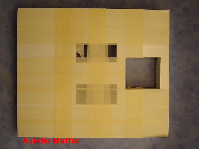 La prima foto mostra la piattaforma, nella parte inferiore, con la parte in plasticard appena incollata.