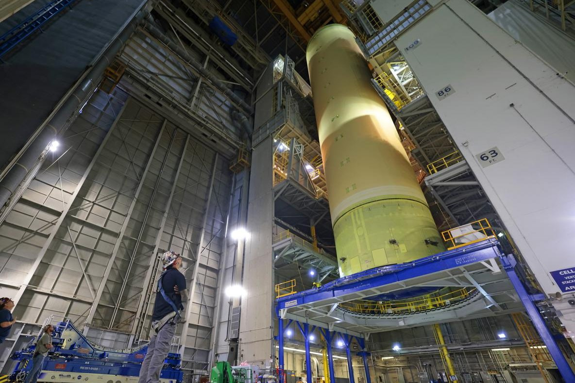 arrivano le foto della movimentazione del serbatoio dell’idrogeno liquido per il core stage 4. La movimentazione è avvenuta il 14 Novembre, stando alla descrizione in fotografia disponibile sulla NASA Image and Video Library. In foto si può anche notare la Forward Skirt 3 che si appresta a essere aggiunta al forward assembly.
