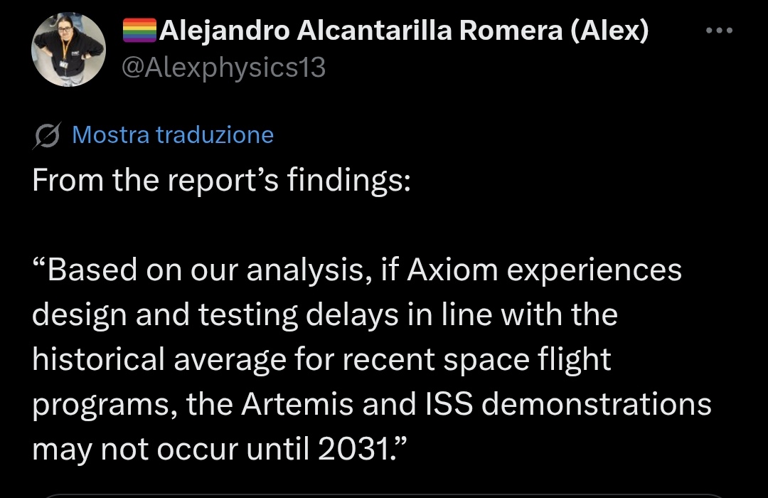 Che se incappano in qualche ritardo, considerando la media dei ritardi occorsi in passato nello sviluppo delle tute spaziali, si va al 2031.