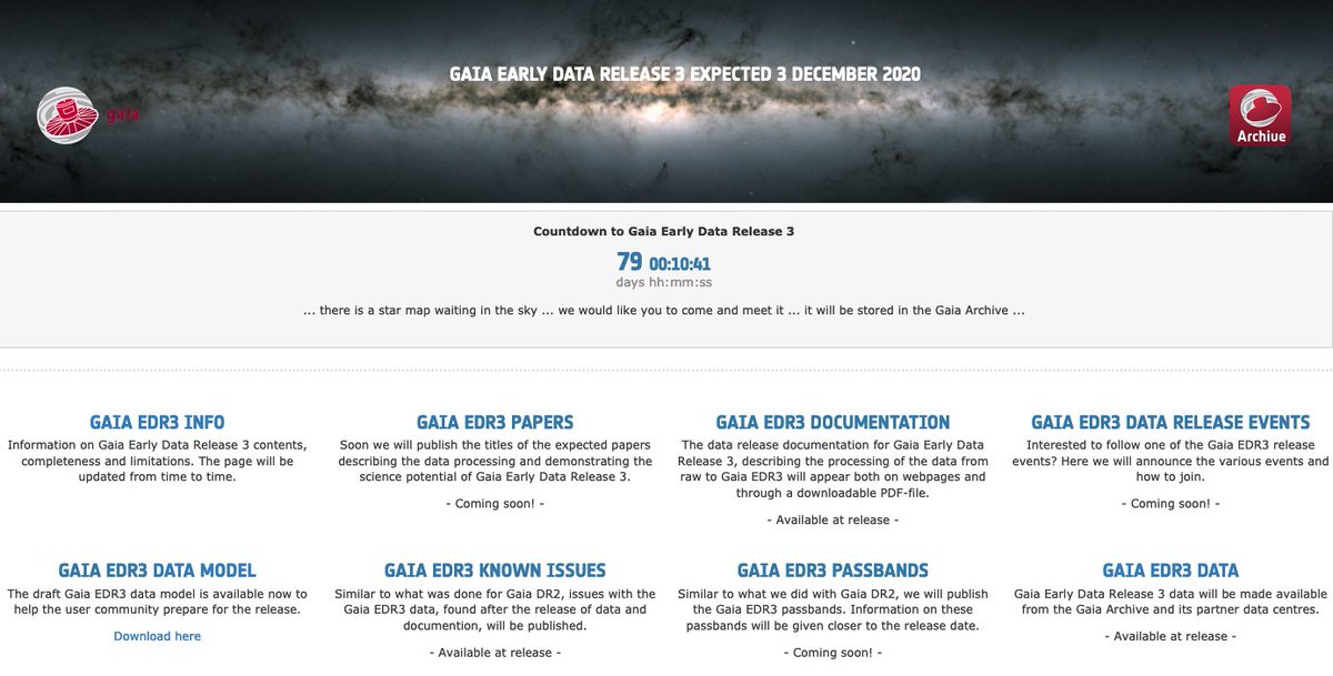 Abbiamo una data ufficiale per Gaia E DR3: 3 dicembre 2020 ore 12:00 CET.