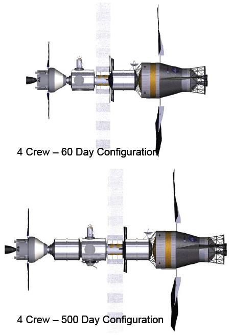 Caratteristica basilare su cui è basato tutto il concept è l’utilizzo massimo di tecnologie già pronte e utilizzate oggi sulla ISS, prevedendone due versioni, una prima per missioni di circa 60 giorni e una più capiente per missioni di 500 giorni, entrambe per 4 membri di equipaggio.