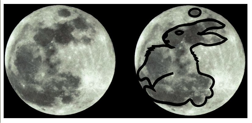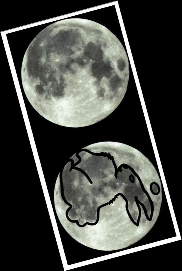 Traendo da Wiki, "Il coniglio lunare yuètù è una creatura immaginaria presente nella mitologia e nel folklore di molti paesi dell’Estremo Oriente ed in particolare di Cina, Corea e Giappone. Si tratta per l’appunto di un coniglio che vivrebbe sulla Luna. Deve la sua origine ad una pareidolia comune in Asia (ma non in Occidente) per la quale è possibile vedere, negli avvallamenti della faccia illuminata della Luna piena, la figura di un coniglio seduto sulle zampe posteriori a fianco di un pestello da cucina