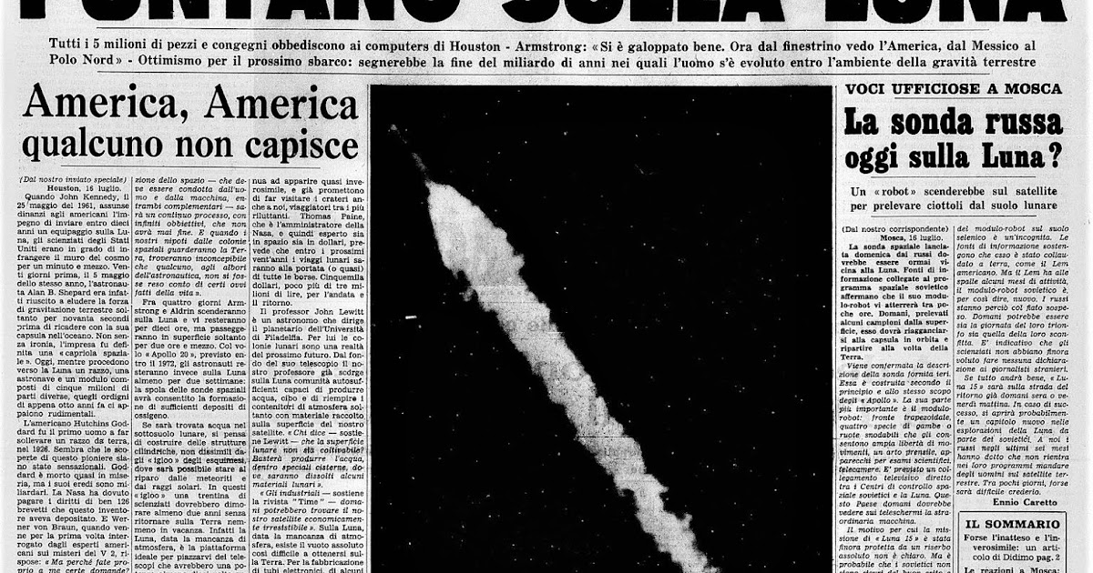 Decine di migliaia di persone continuano ad arrivare a Cape Kennedy, in Florida, da ogni parte degli Stati Uniti e da molti altri paesi. Si stima che al momento del lancio del gigantesco Saturn V, saranno stipati lungo le spiagge adiacenti al Centro spaziale più di un milione di persone. Sulle tribune “vip” erette a pochi chilometri dalla rampa di lancio si siederanno circa settemila invitati tra scienziati, politici, ambasciatori stranieri, uomini d’affari e personalità minori. Ad essi si aggiungeranno cinquemila giornalisti inviati dai giornali di tutto il mondo insieme a radiocronisti e cineoperatori. Secondo alcuni calcoli fatti a tutt’oggi, vigilia del lancio, almeno 590 milioni di persone seguiranno il decollo del veicolo spaziale diretto verso la Luna sui teleschermi di quaranta paesi.