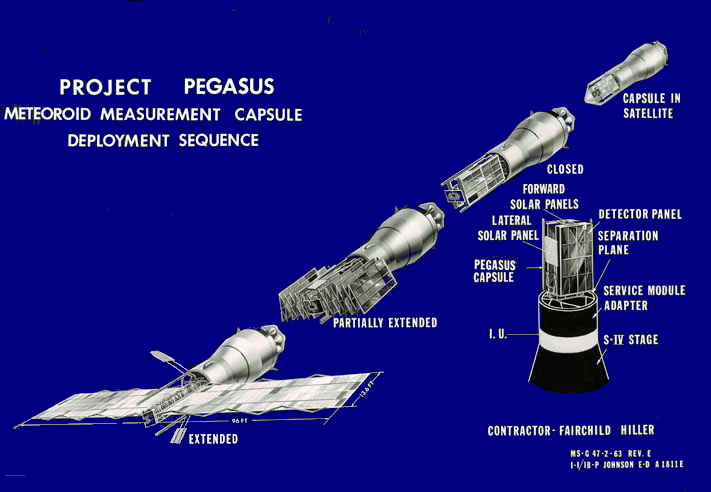 Il 16/02/1965 fu lanciato un SaturnI (SA8) in configurazione BlockII, alla sommità di tale struttura era alloggiato il primo satellite Pegasus, progettato per valutare l’effetto del bombardamento delle micrometeoriti su predisposti pannelli d’alluminio.