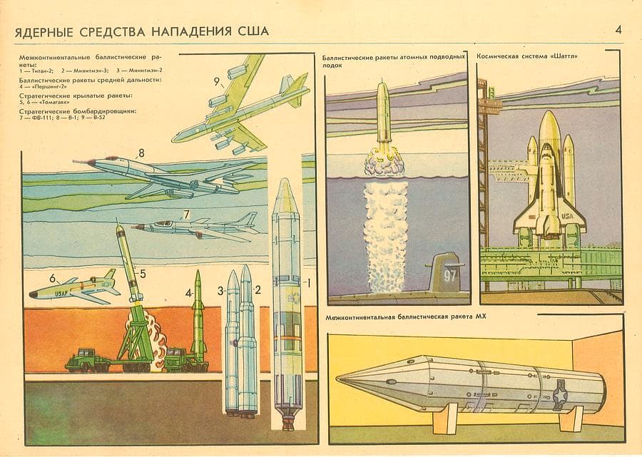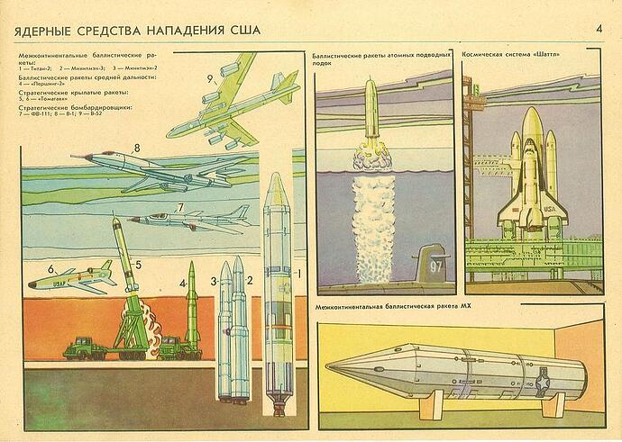 La cosa incredibile è che tra i mezzi offensivi nucleari americani viene rappresentato uno Space Shuttle (Enterprise oppure il Columbia a giudicare dall’ET di colore bianco).
