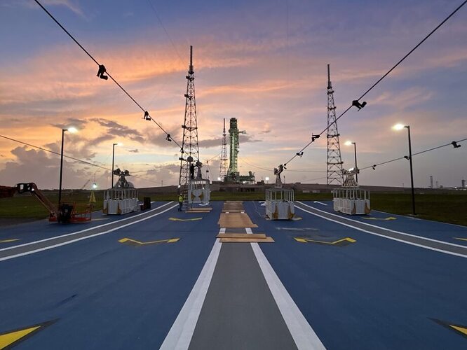Vale in generale per le missioni Artemis, ma le torri di lancio sono state dotate di un nuovo sistema di freni magnetici.