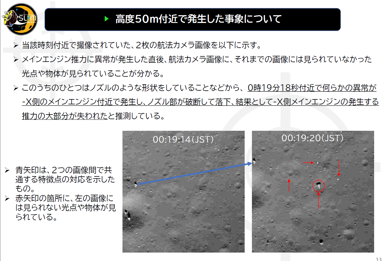Immediatamente dopo che si è verificata un’anomalia nella spinta del motore principale, nell’immagine della telecamera di navigazione è stato osservato un problema non riscontrato nelle immagini precedenti.