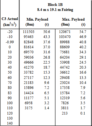 La performance iniziale di SLS Block 1B (EM-3) sarà nettamente superiore a quella del Block 1. I numeri variano in base alla modalità scelta (cargo o crew) e al fairing selezionato (la differenza di massa incide). SLS Block 1B Crew offre 37600 kg verso TLI. Consente di lanciare Orion e 9000 kg di cargo annessi. La performance di SLS Block 1B è superiore. SLS B1B può portare quasi 41000 kg verso TLI con il fairing da 19.1 metri. In teoria 42000 kg con il fairing da 318 m3. Tuttavia questi numeri non sono definitivi per il block 1B e probabilmente sono anche leggermente inferiori a quelli che saranno per il primo volo…
