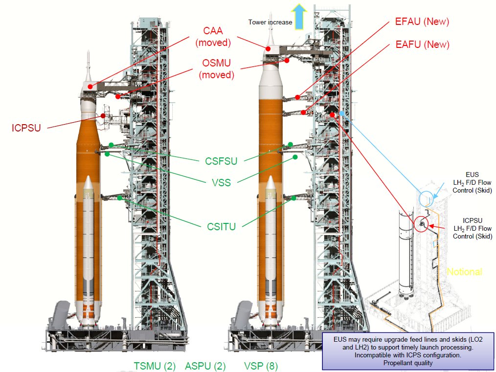 Il contractor “Betchell” ha infatti avuto severe difficoltà con il design e l’implementazione del progetto accumulando un ritardo di 7 mesi. Ulteriori problemi sono derivati dal fatto che il contractor ha sottostimato la quantità di materiale e di personale necessario. Il COVID-19 ha inoltre portato a un incremento significativo del costo dei materiali. Ulteriori costi sono stati aggiunti dal redesign delle interfacce ML/EUS a causa del fatto che quest’ultimo era ancora in sviluppo quando il contratto è stato assegnato. Infine il design finale è risultato sovrappeso di 225 tonnellate… La NASA è intervenuta rilasciando un eguale quantità di margine dalla capacità del Crawler Transporter e inoltre in collaborazione con il contractor sono state individuate 31 idee da incorporare nel design finale di ML-2 che porterebbero al taglio di 258 tonnellate di massa in eccesso.