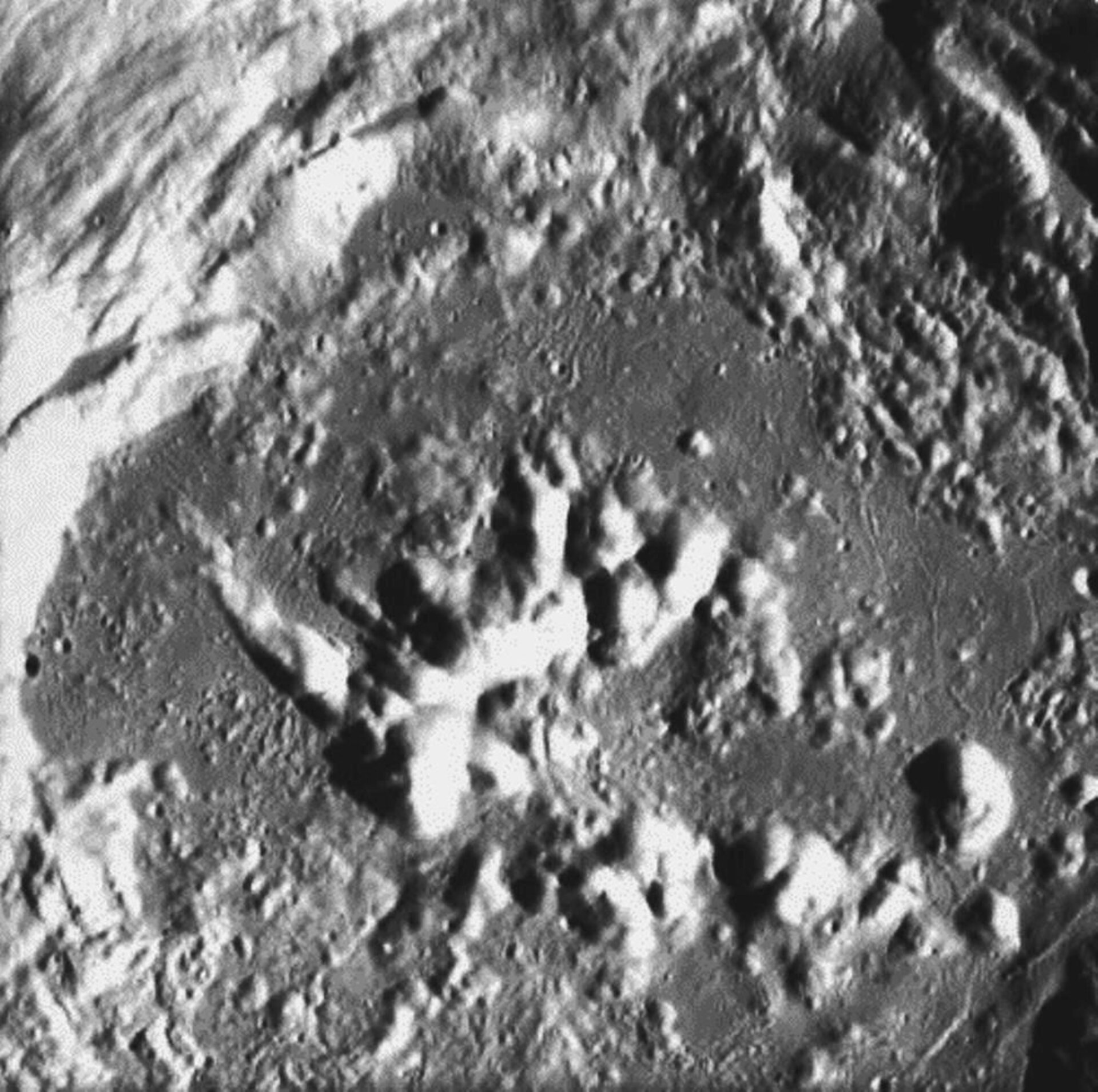 board ESA’s SMART-1 spacecraft, shows the central peaks of crater