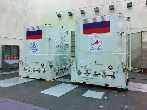 (Il container di sinistra ha l’emblema del produttore, NPO VNIIEM)