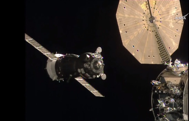 La Soyuz in avvicinamento alla ISS.