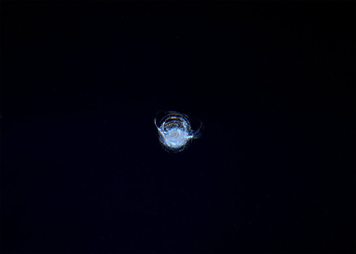La foto è stata scattata da Tim Peake il mese scorso, e mostra un chip circolare di ~ 7 mm di diametro scavato dall’impatto di un piccolissimo detrito, forse un fiocco di vernice o un piccolo frammento di metallo non più grande di un paio di millesimi di millimetro